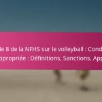 Les normes d’équipement font référence aux directives spécifiques établies par la NFHS qui dictent les matériaux, le design et les caractéristiques de performance de l’équipement de volleyball. Ces normes s’appliquent à divers articles, y compris les ballons de volleyball, les filets, les uniformes et l’équipement de protection. Respecter ces spécifications est crucial pour maintenir l’intégrité du jeu.